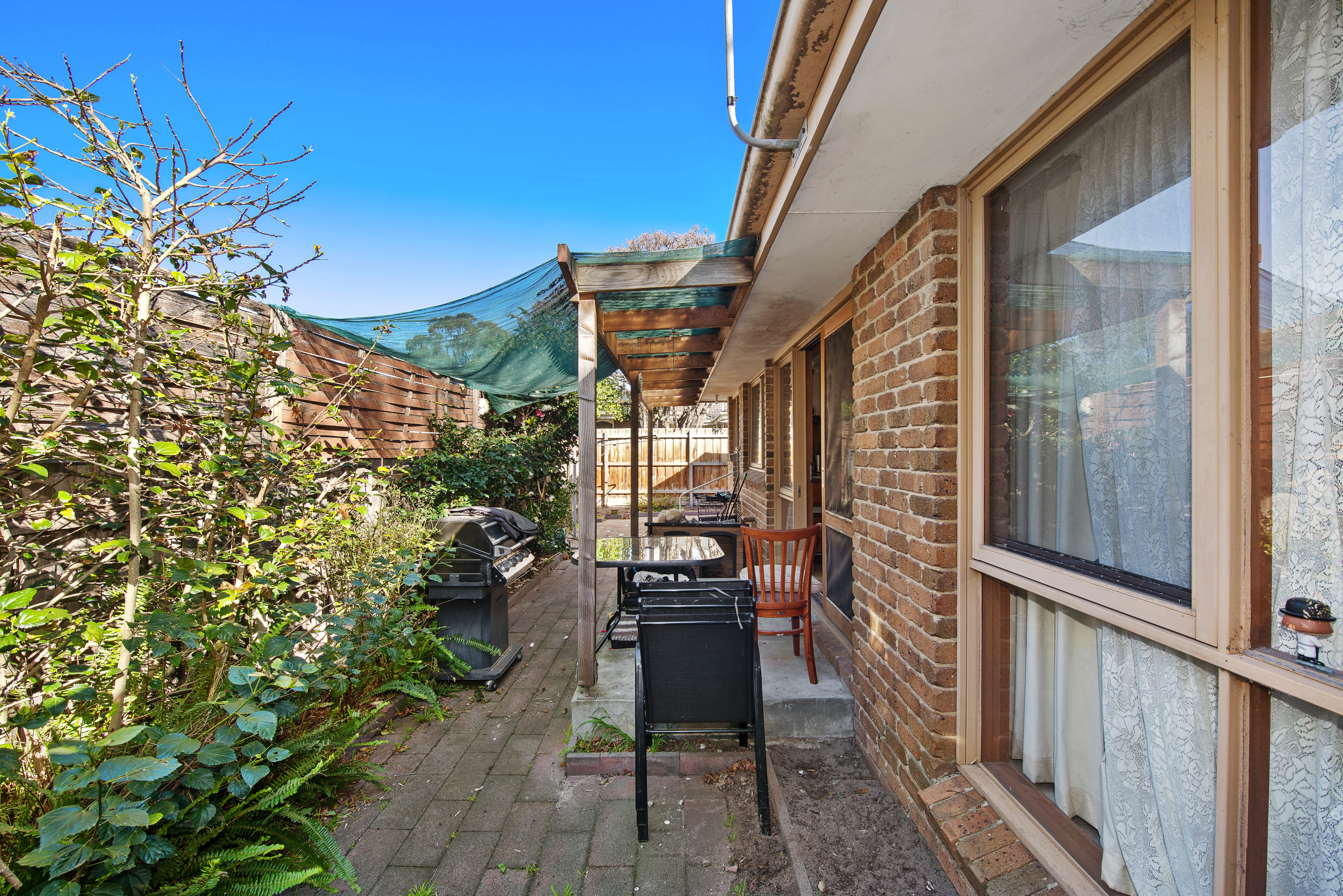 Comprising: separated entry, large formal lounge dining  with bay window and sunny northerly private garden outlook, fully fitted central kitchen with  informal dining area opening to a paved outdoor entertaining area two generous bedrooms both with built in robes, bathroom with separate shower and bath all in an established private landscaped garden.