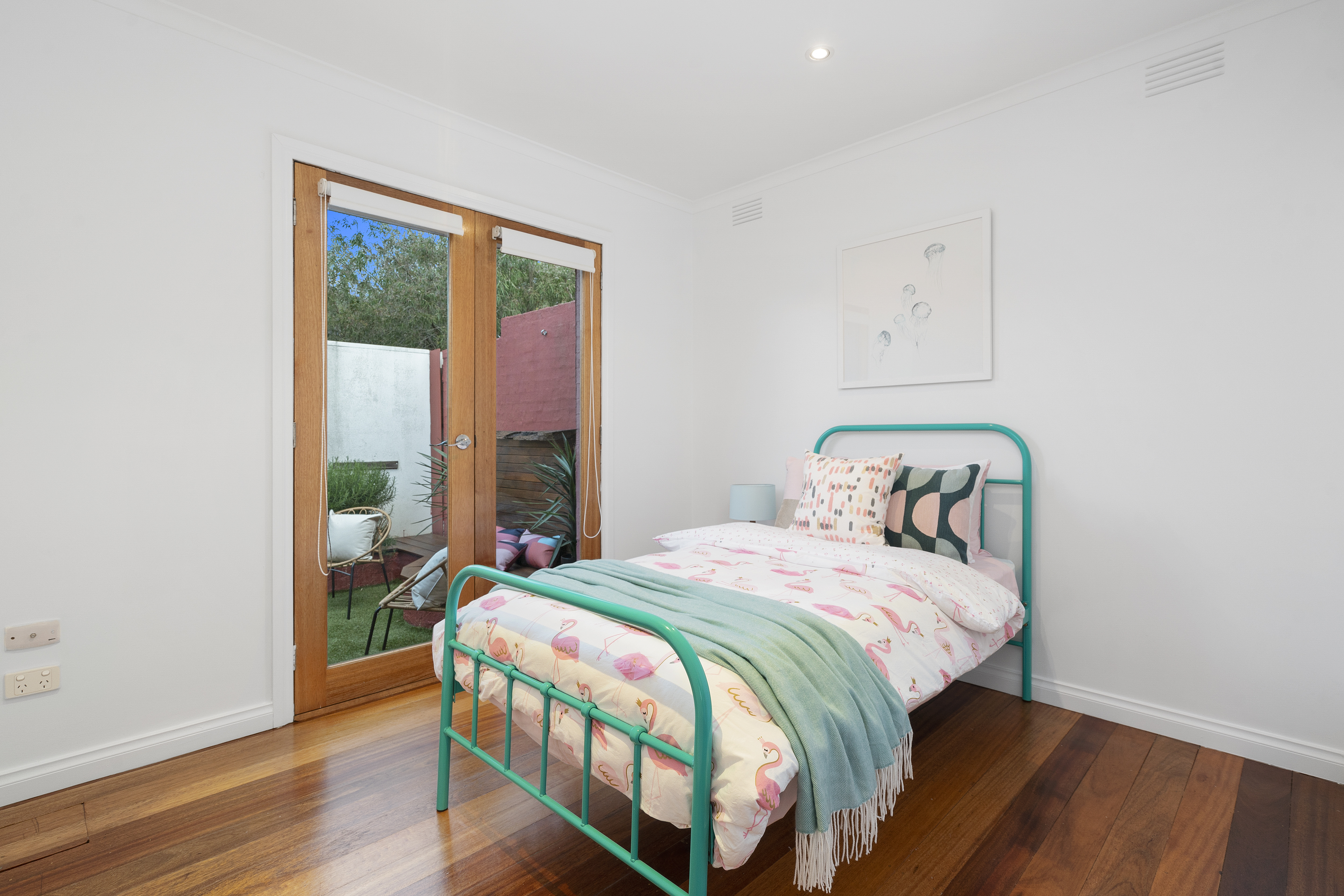 Fully renovated and fresco-focused with a bi-fold servery from the skylit stainless-steel appliance kitchen, there are more French doors from the second bedroom and more space to catch the sun in the creatively landscaped courtyard. Starring a big bright designer bathroom with walk-in shower and wall-hung vanity, there are big robe-fitted bedrooms, and quality window-furnishings and glossy polished boards throughout.