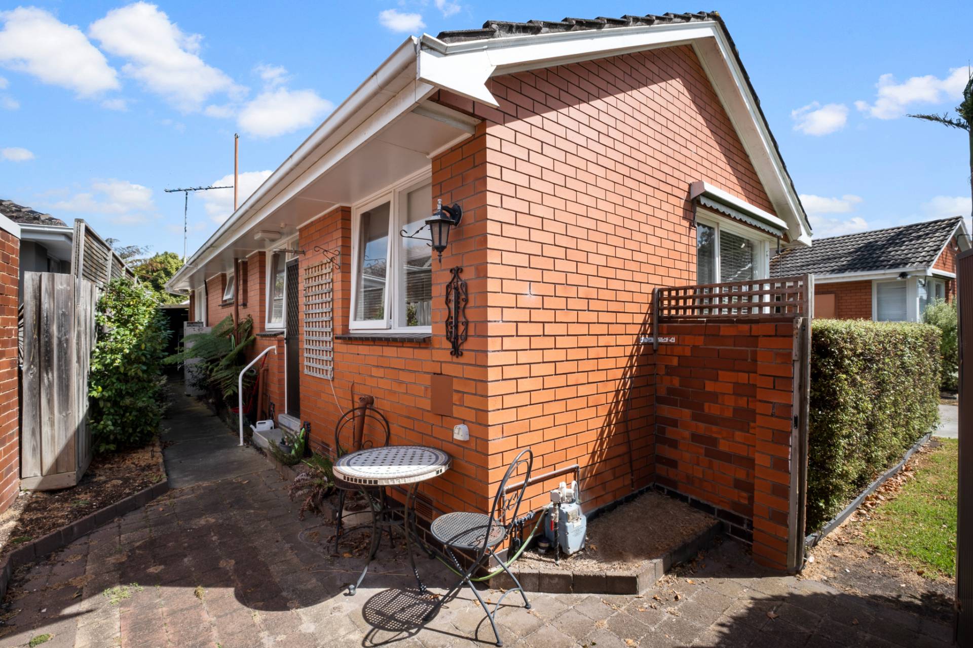 A private paved sun-filled courtyard offers an attractive entertaining area for the keen gardener with a spacious garden shed opening off the single lock-up garage, accessed by a camellia-lined pathway off the kitchen.