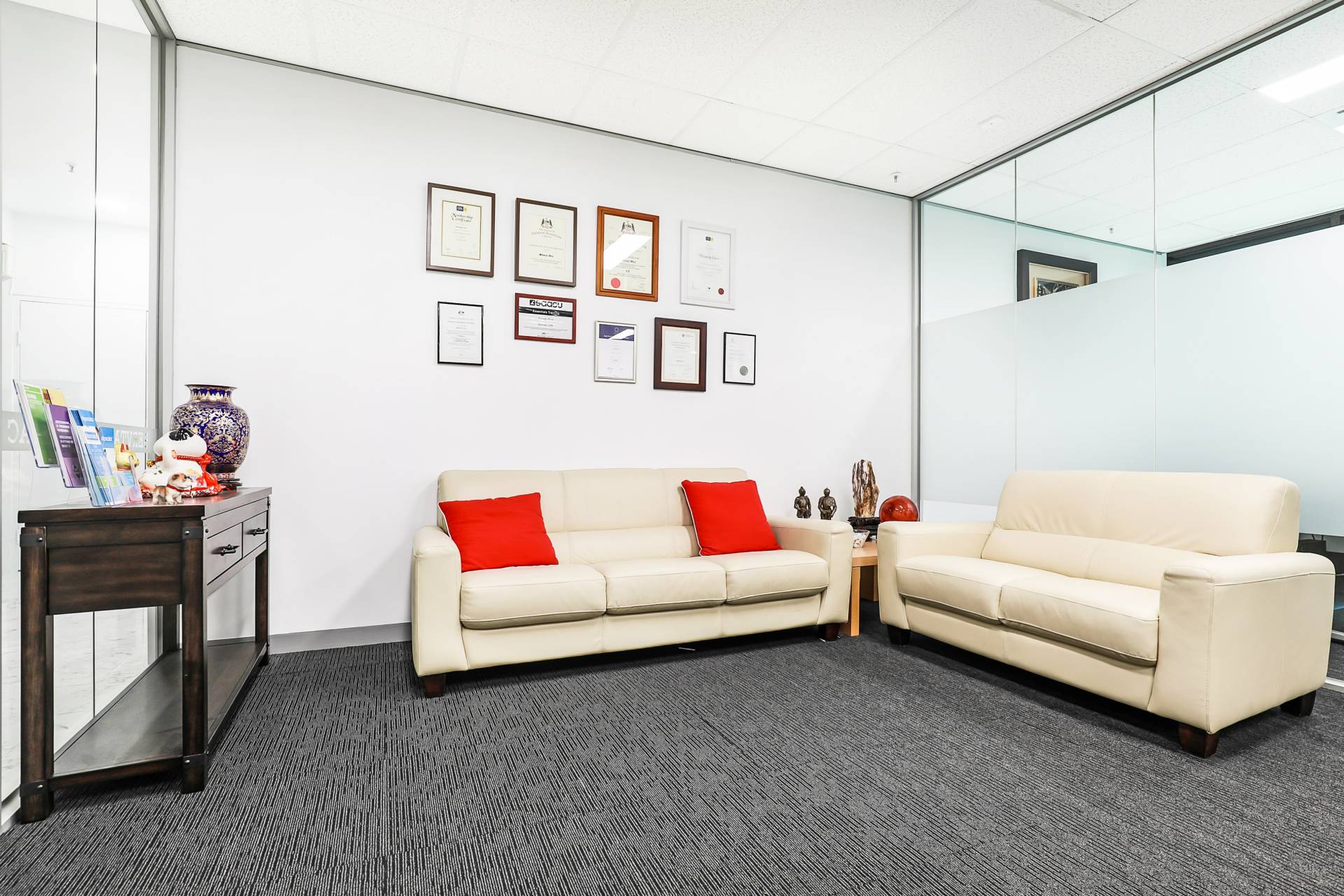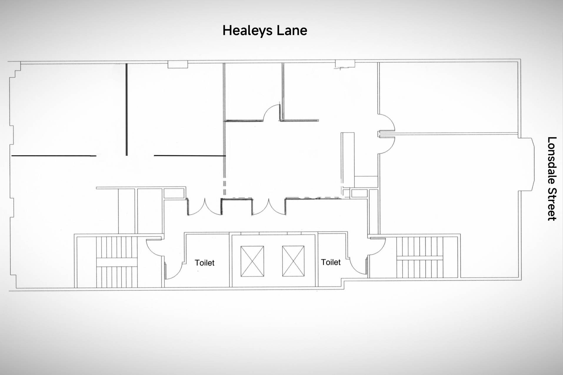 • OFFICE 1 Faces Lonsdale Street & has a small interview room a good sised reception area and behind that a facilities area, also a large Meeting room and an open plan area facing Lonsdale Street (see floor plan) There are 2 toilets on the floor for the exclusive use of the Tenants.